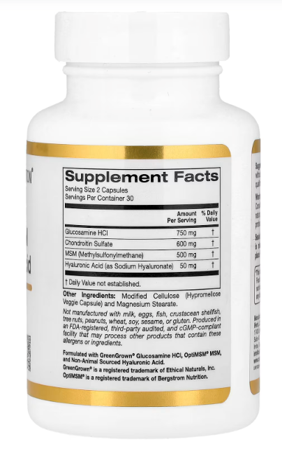 - California Gold Nutrition Glucosamine Chondroitin, MSM, Plus Hyaluronic Acid