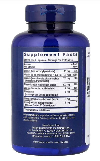 Take four (4) capsules daily, or as recommended by a healthcare practitioner. Scientific studies suggest calcium supplementation in divided doses with food in the morning and evening may yield the best results. Maintaining an optimal vitamin D blood level also helps maximize calcium absorption.